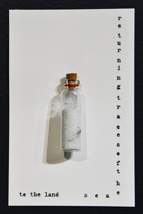 Vestiges is a collaboration with Camilla Nelson (Singing Apple Press) that combines text and material traces from my performance Cure for Walking C. The work explores gestures of mark-making and inscription across the curved landscape of the Mere Downs with seaweed, salt and charcoal. Corporeal connections across deep time, when land was once sea, are re-written through material exchange. Sarah’s practice works with processes of al-chemical transformation to consider interwoven human-nonhuman ecologies.